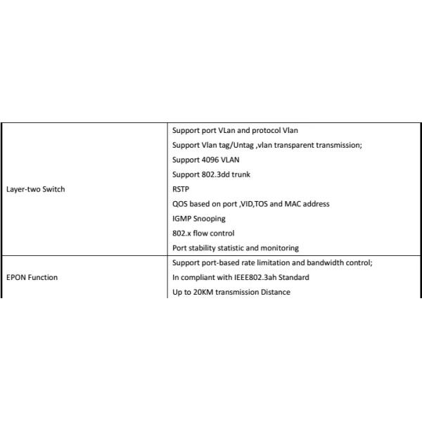 The OLT can use for “Triple-Play”, CPN, IP Camera, Enterprise LAN and IOT applications. It is a high performance products.